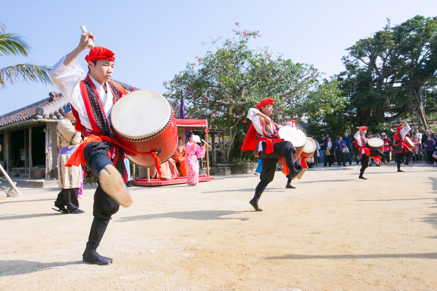 沖縄の祝い⾏事には⽋かせない⼿踊り。曲に合わせて