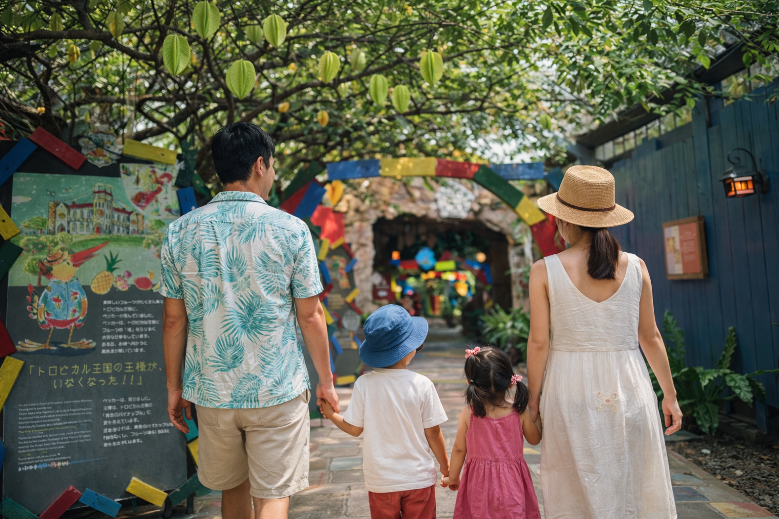 トロピカルガーデンで謎解き探検!子どもも大人も一緒に楽しめる、絵本の世界へ飛び込む体験型テーマパーク,一歩足を踏み入れれば、そこは亜熱帯植物に囲まれた園内に仕掛けられた絵本の世界、「トロピカル王国」。