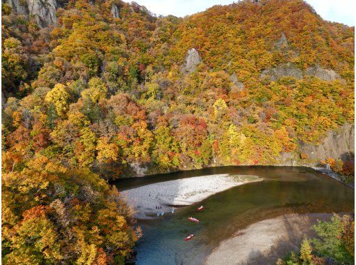 川遊びや飛び込みなど、自然の遊びを満喫しよう!r>渓谷の豊かな自然の中、森林浴気分でカヌーをお楽しみください。カヌーを降りて川遊びをすることもできます。ライフジャケットを着用しているので、川に飛び込んで遊ぶのも楽しいですよ。飛び込みスポットもあるので、お子さまも大はしゃぎです。景観を楽しむなら、おすすめの時期は秋!圧巻の紅葉が見られます。木々が赤や黄色に色づき、自然の色彩の美しさを感じます。