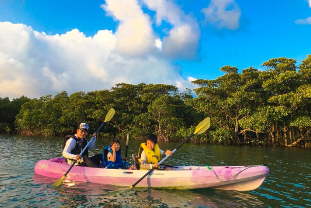 国指定天然記念物マングローブ林の中をカヤックで進みます。マングローブを間近で見れたり、南の島特有の生き物を見れます。サンゴの岩の洞穴など冒険気分を味わえるポイントもあります。