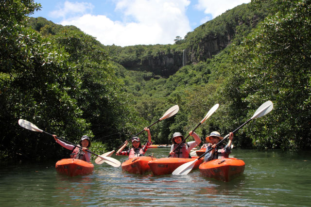 カヤックの魅力は、自由にパドルを動かしているうちに水と一体になれること。穏やかな水上にカヤックを任せて、周囲にそびえるマングローブの原生林をじっくりと見られるプランです。美しい滝や日本最大規模のマングローブ林は、まるで絵画のよう!時間がなくてもマングローブを楽しみたい方にはうってつけのプランです!