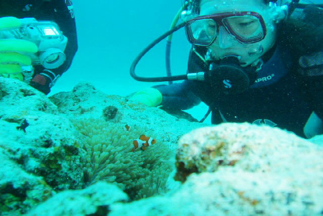 お魚いっぱいの海で楽しくダイビング! 波のない比較的浅い場所で行いますので最初から楽しめます。(1日間)