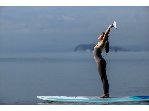 湾になっている逗子海岸は遠浅で穏やかな海なので、初めての方、泳ぎに自信のない方でも安心してSUPヨガ体験をお楽しみ頂けます。安定感のある大きなサーフボード(SUP)を使って海の上に浮かびながらヨガを楽しみます。座・立・寝ポーズ、パドルを使ったポーズと、色々な動きを楽しめ、リラックス効果も抜群。