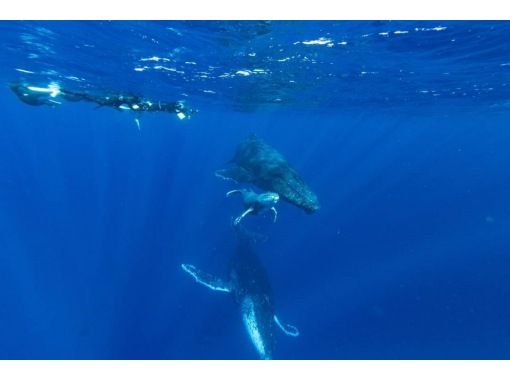シンガーが歌うホエールソング、子供に授乳中の母クジラ、親子クジラをエスコートするクジラなど様々な感動シーンが詰まっているホエールスイム!