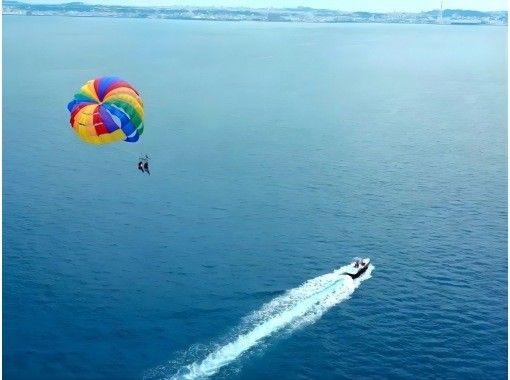 海中道路、浜比嘉、平安座島、伊計島、津堅島周辺でお手軽パラセーリングが楽しめます。