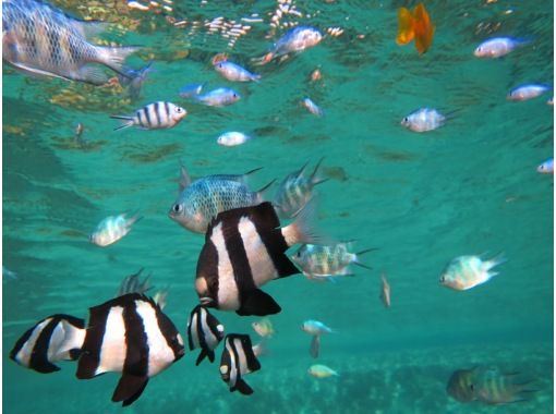 可愛いお魚と青の洞窟シュノーケルコースはお客様全員に安心してご参加頂けるように足の着く浅場から練習できるようにプランを開催しております、小さなお子様からご年配の方まで沢山の方にご参加頂き喜んでいただいております。