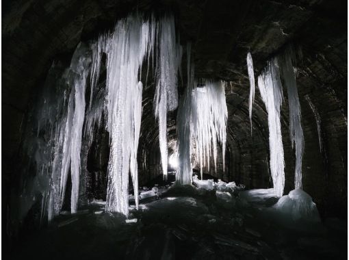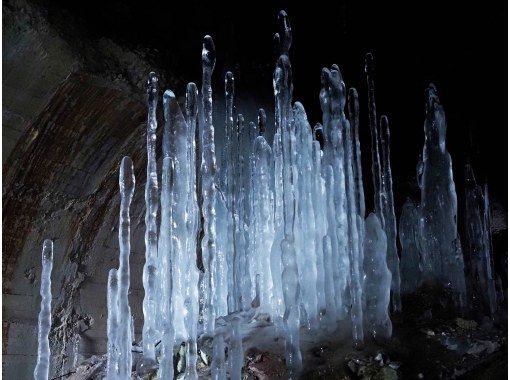 トンネル内部には、冬の間に染み出た水が凍って巨大な氷柱ができ、昭和の遺構と自然が融合した神秘的な景観をご覧いただけます。