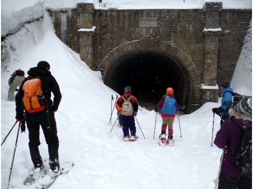 廃道をスノーシューでハイキングするツアーです。