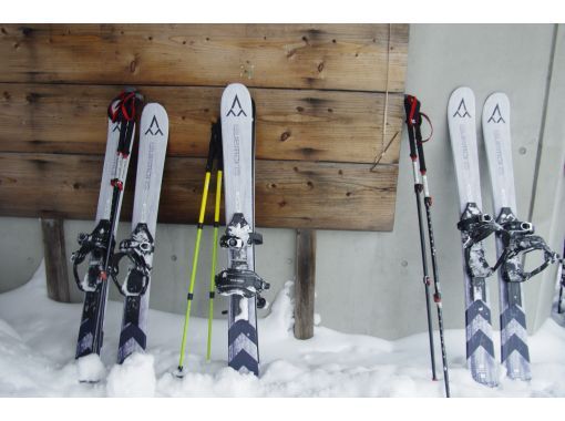 散策用ショートスキーは、ふかふかのパウダースノーの中を滑ったり、スノーシューのように新雪の中を歩いたり登ったりすることができるスノーギア。滑りも楽しめるスノーシューのような道具です。ゲレンデスキーとは違った楽しさがあります。
