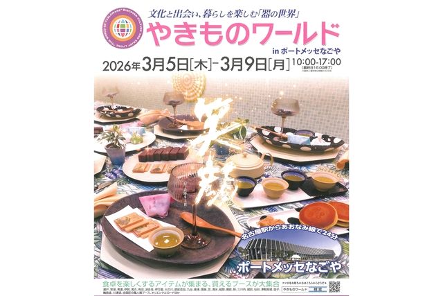 文化と出会い、暮らしを楽しむ「器の世界」 ~食卓を楽しくするアイテムが集まる、買えるブースが大集合~,日本最大級の陶磁器フェア。 瀬戸、常滑、美濃、伊賀、萬古、有田、波佐見、伊万里、火の川、肥前吉田、九谷、唐津、信楽、京、清水、砥部、備前、萩、三川内、越前、仙台、津軽烏城、益子、輪島塗、川連塗、匠の職人展、オリエンタルロードなど約240のブースが出展予定。 テーブルコーディネートや東海地区で活躍す .....もっと見る