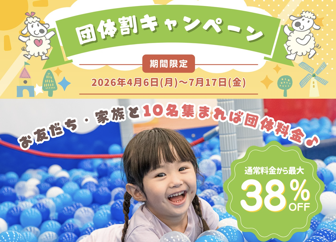 【10名様〜OK】少人数でも団体割引が適用!雨天決行できる全天候型パーク,**★今だけ!期間限定の特典付(2026年〜7月17日まで)★** ●ポラロイド撮影プレゼント!(1団体につき1枚) これまで「20名以上」だった団体適用条件を「10名様以上」へ大幅に拡大しました。**0才および1才のお子様は無料のため団体人数には含まれません。**お友達家族や小規模なサークルでも、気軽にお得な団体料金 .....もっと見る