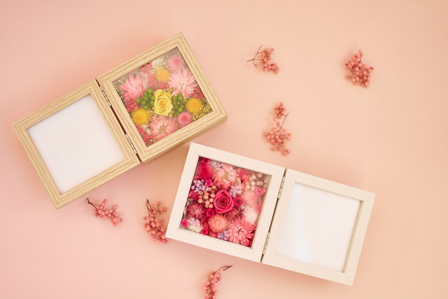 ナチュラルでありながら華やかな仕上がりは、インテリアとしても贈り物としてもおすすめ。