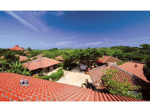 赤瓦屋根の民家や白砂の道が広がる集落の中を三線を聴きながらのんびりと巡ります♪水牛車観光の後はフリータイム