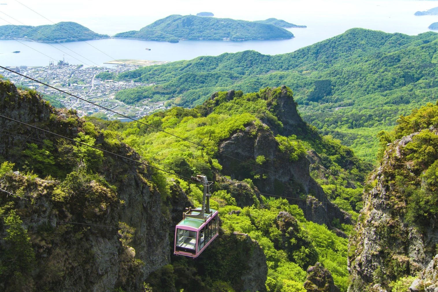 前日までの購入でお得!!(A・C期間)「寒霞渓ロープウェイ」往復割引クーポン,「寒霞渓ロープウェイ」は、香川県・小豆島にある「寒霞渓(かんかけい)」の山頂へお送りするロープウェイです。瀬戸内海国立公園に指定された小豆島のほぼ中央に位置し、日本三大渓谷美のひとつとして称され小豆島が誇る景勝地となっております。深い渓谷を行くロープウェイから望む、瀬戸内海の素晴らしい景色に圧倒されます。こちらのページでは、「寒霞渓ロープウェイ」の往復乗車券割引クーポンを販売中。ぜひこの機会にご活用ください。 ※6歳未満のお子様は大人1名につき1名無賃になります。 ※自転車の持ち込みには別途運賃が必要です。 折り畳んだ状態で袋に入れていただいた場合手荷物運賃100円、そのままの乗車の場合自転車1台に付き1名分の運賃がかかります。 ※ペットはケージなどに入れていただければ乗車可能です。ペット乗車の際は別途運賃が必要になります。 片道100円、往復200円(介助犬・盲導犬は除きます) 但し混雑時などケージの大きさによっては乗車をご遠慮いただく場合がございます。 ※授乳室はございません。 ※本チケットは優先乗車券ではございません。また、ロープウェイの待ち時間を短縮するものではございませんので予めご了承ください。 ※乗車便の指定、また乗車時間を指定することはできません。 ※窓口カウンターでチケットを引き換えてください。ゴンドラに直接乗車をすることはできません。 ※お客様のご状況によっては、利用の制限をかけさせていただく場合がございます。 ※他のクーポンとの併用はできません。 ※6歳未満のお客様に関しては、大人1名様につき無料とさせていただいております。2人目以降は、小学生料金を頂戴しております。,四季折々の絶景から目が離せない!スリルと感動の5分間を体験しよう,「寒霞渓ロープウェイ」は、麓の「こううん駅(紅雲亭)」から約5分でみなさまを山頂へお送りいたします。車窓からは、春の新緑・夏の碧・秋の紅葉・冬景色の四季折々の風景や、そそり立つ奇岩を間近に深い渓谷を通っていく絶景など、空・海・渓谷を一度に眺望できるロープウェイとなっております。上りと下りで違った景色をご堪能ください。また、山頂では、美しい絶景が広がる展望台や、総工費1億円の快適なパブリックトイレ、レストランなども充実。ぜひ、渓谷美と瀬戸内海の絶景を空中よりお楽しみください。ご家族やカップル、団体さまでのご旅行プランにおすすめです。 .....もっと見る.....閉じる