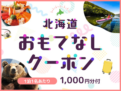"函館周辺の人気飲食店や観光施設で使える! 函館(北海道)マルチクーポンが、お一人様1泊1名につき1,000円分付いてくる! お得なプランです。"