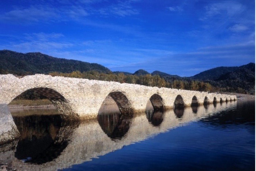 タウシュベツ川橋梁は、北海道遺産に認定された旧国鉄士幌線コンクリートアーチ橋梁群の一つです。