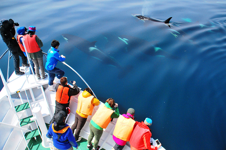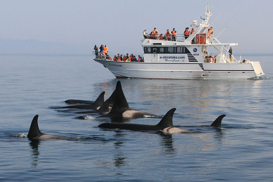 その魚を目当てにシャチやマッコウクジラ、ミンククジラ、ナガスクジラなどの海の動物たちがやって来ます。時期によって観察できる動物が異なるので、乗船する度に新たな出会いがあるかも。海の王者シャチは春(4~7月)、全長15mを超えるマッコウクジラは夏(7~10月)が観測のベストシーズンです。シャチは日本で羅臼以上に遭遇できる場所は他になく、イシイルカは水族館では飼育されていないため野生でしか出会うことができない、貴重な体験です。ここでしか得られない感動を味わってみませんか。