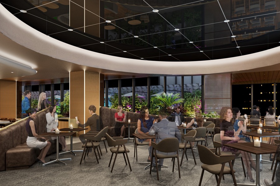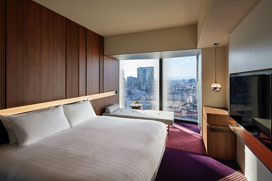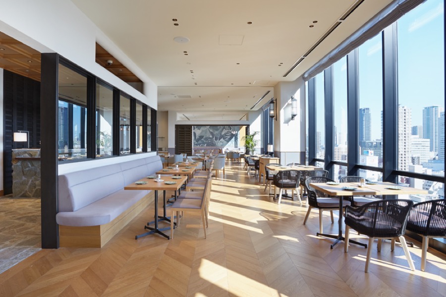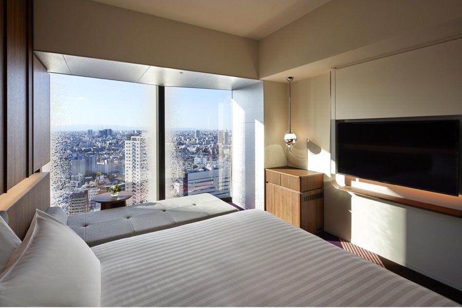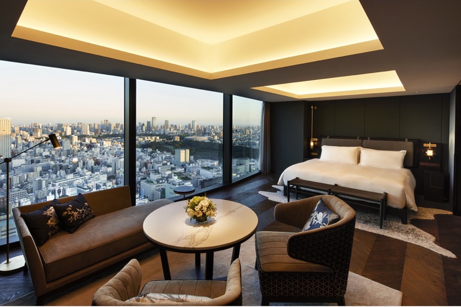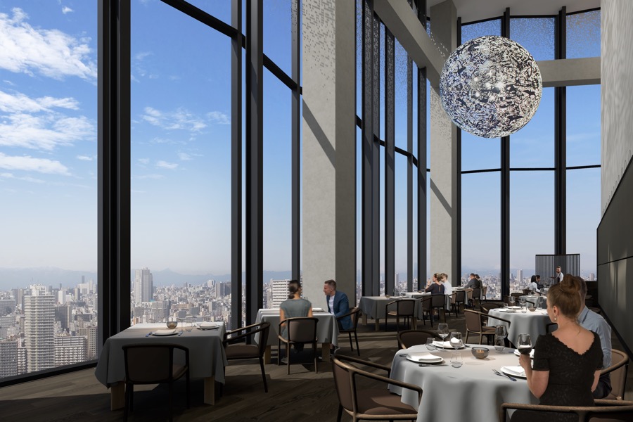 39~44Fには日本文化を感じられるアイテムが織り交ぜられた7mのワイドビューの窓を持つ客室を、45~47Fには3層吹き抜けの圧倒的な眺望のレストラン、スパ、ペントハウスをご用意し、お客さまを天空のプライベートヴィラへと誘います。