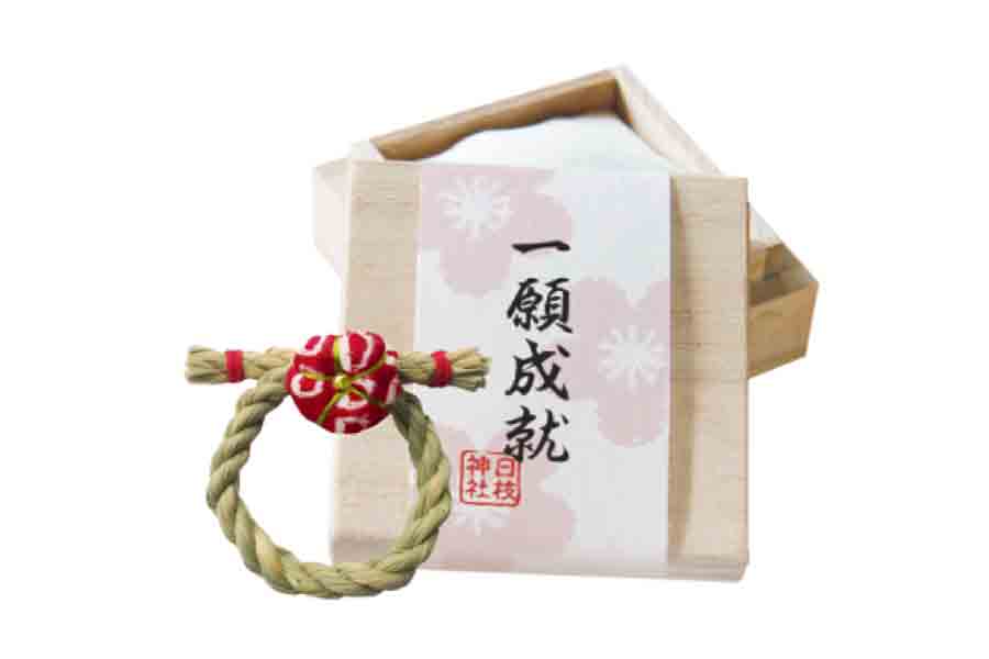 樹齢800年越えの根元が一つとなった二本の「夫婦杉」は「子宝の杉」とも言われています。また、手作りで結び目のちりめんの色柄が異なる桐箱入りの「一願成就お守り」が大人気!数量限定、社務所が開くのも不定期のため入手が難しい希少価値の高いお守りです。