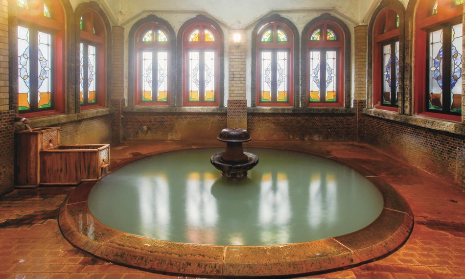当館自慢の文化財風呂「天平大浴堂」は総檜造りで国内随一のもの。