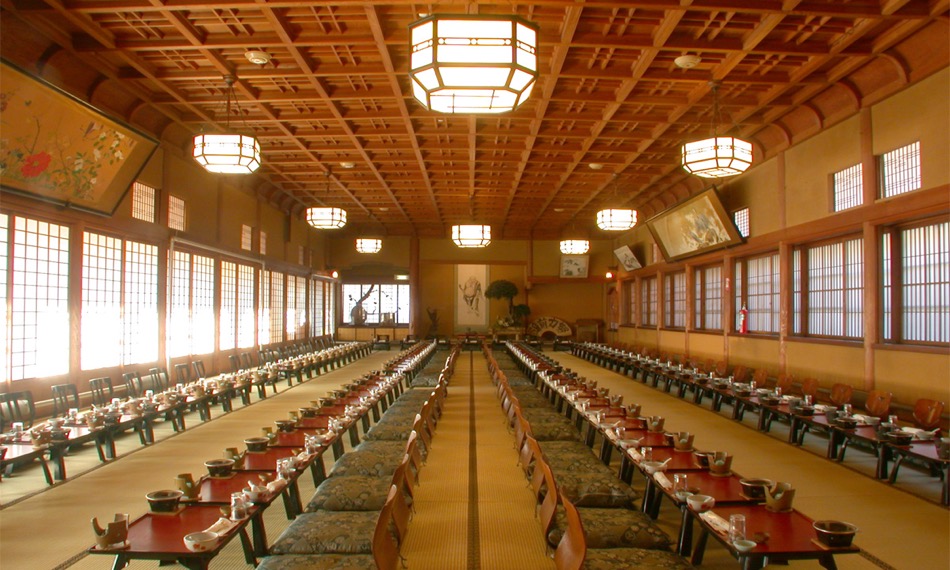 創業宝暦8年(1758)。木造主体の建物は古きよき日本建築を継承し、「斉月楼」と「大広間」は、「国登録有形文化財」に認定されています。