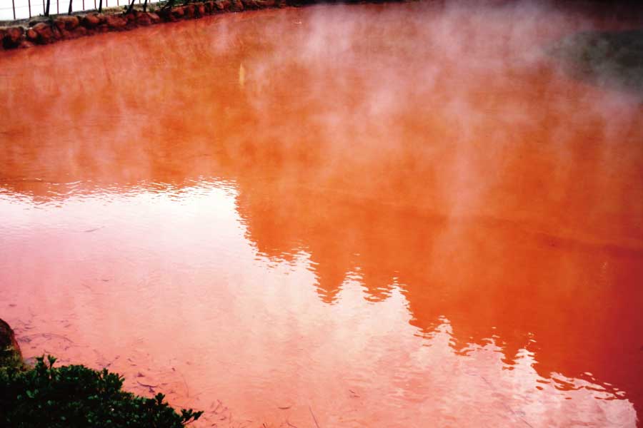 また源泉数2,847と、一日の湧出量約13万キロリットルは、ともに全国一を誇り、泉質も単純温泉、塩化物泉、硫黄泉などよく知られているものから、二酸化炭素泉、硫酸塩泉、含鉄泉など、あまりなじみのないものまで、地球上にあるといわれる11種類のうち放射能泉を除く10種類が確認されています。