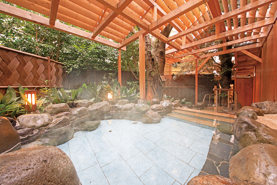 7つの源泉からこんこんと湧き出る湯量豊富な癒しの温泉。お部屋でも心行くまで温泉を楽しんでもらおうと、全客室天然温泉給湯を実現しております。