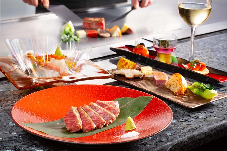 旅館ではめずらしい鉄板焼が夕食の施設です。山中温泉の絶景スポット・鶴仙渓沿いにたたずむ旅館なので自然も楽しむこともできます。