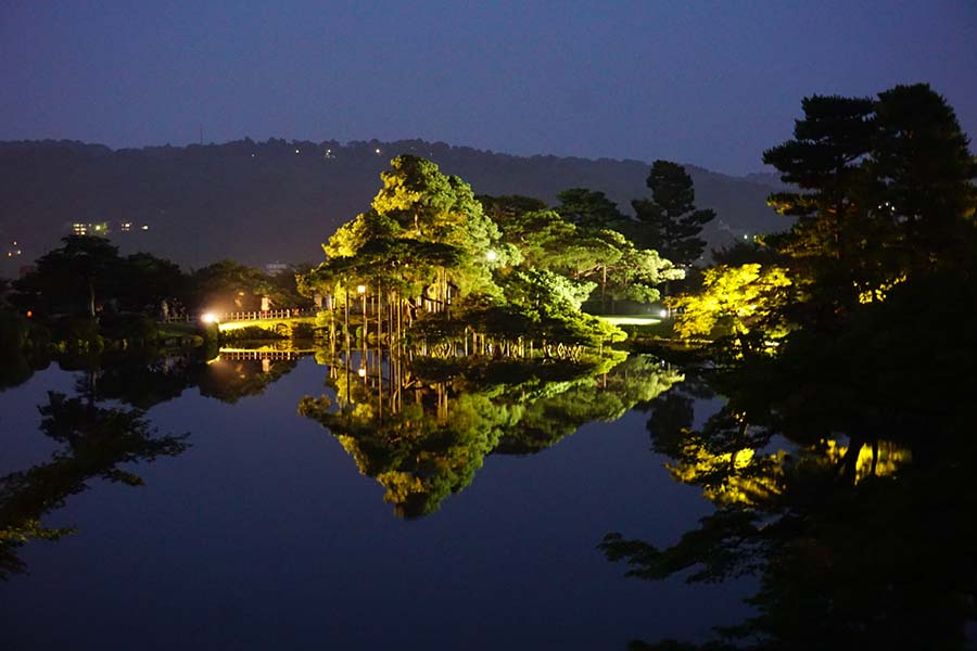 日本三名園のひとつの「兼六園」。四季を通じて日本の自然美を堪能できます。兼六園では年間を通してライトアップイベントを開催しています。