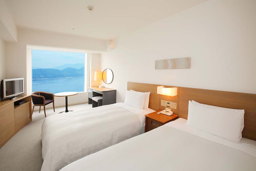 すべての客室から、広島市内や島々が点在している瀬戸内の美景を眺めることができます。