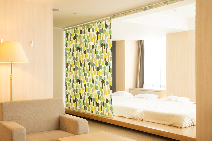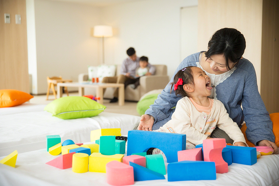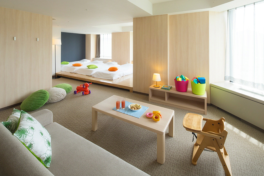 「旅行で一番大変なのは、ママ」という視点で、ママのストレスを軽減して滞在をお楽しみいただくための取り組みを進める星野リゾートトマムのプロジェクト「ままらくだ委員会」が考えたコンセプトルーム。