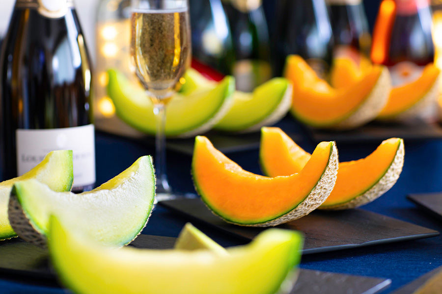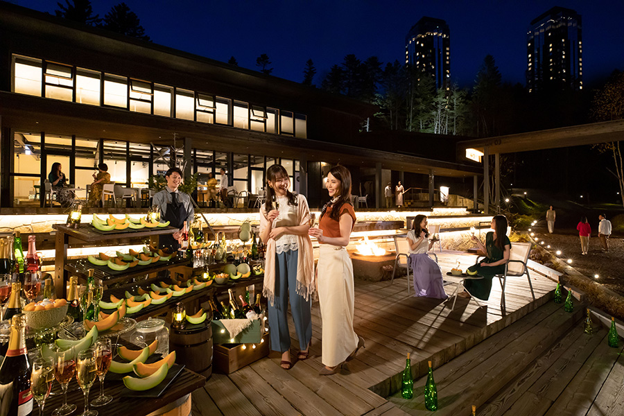 夏が旬の北海道を代表する名産品メロンとシャンパンのマリアージュを愉しむイベントが2019年に続いて開催!開催場所のcafé&bar「つきの」があるホタルストリートは山の中腹にあり、森に囲まれているため木々の香りや森の冷涼を感じられるスポットとなっています。さっぱり爽やかな青肉メロンと濃厚な甘みの赤肉メロンと共に清涼感のあるシャンパンでぜひトマムの夏の夜をお過ごしください!