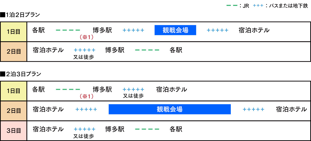 - JRセットプランについて、博多駅から宿泊ホテルや競技会場まで宿泊ホテルや競技会場から博多駅までの交通費はお客様負担となります。