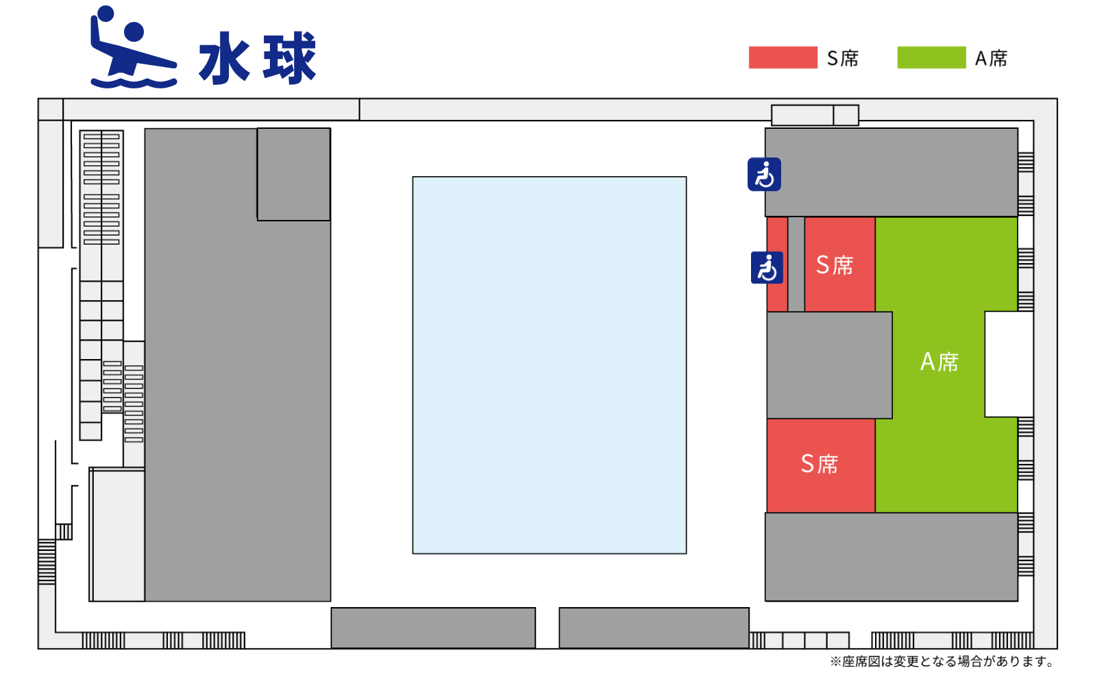 競泳、アーティスティックスイミングの観戦席はチケット受取時にご確認ください。