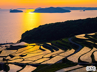 - 日本の棚田百選の中でも指折りの棚田との呼び声も高い土谷棚田(どやたなだ)。毎年4月末から5月初旬の田植えの時期には、約400枚の水田が夕陽に照らされて輝き出します。沈む夕陽と島影、そして棚田の美しいコントラストは必見です♪