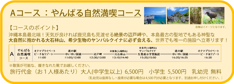 ・Aコース やんばる自然満喫コース 10:50集合/11:00出発