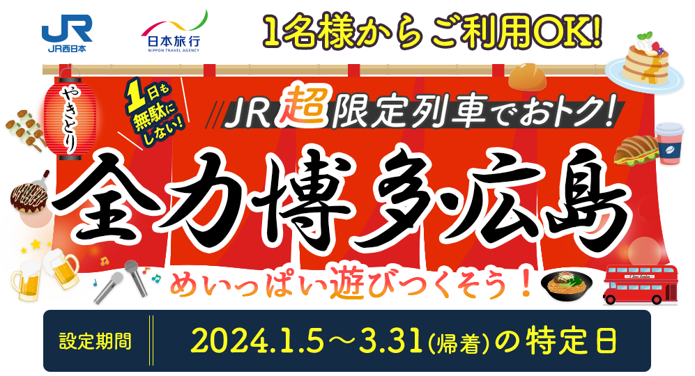日本旅行 トップ > 赤い風船 関西版・北陸版 > JR超限定列車でおトク!全力博多・広島