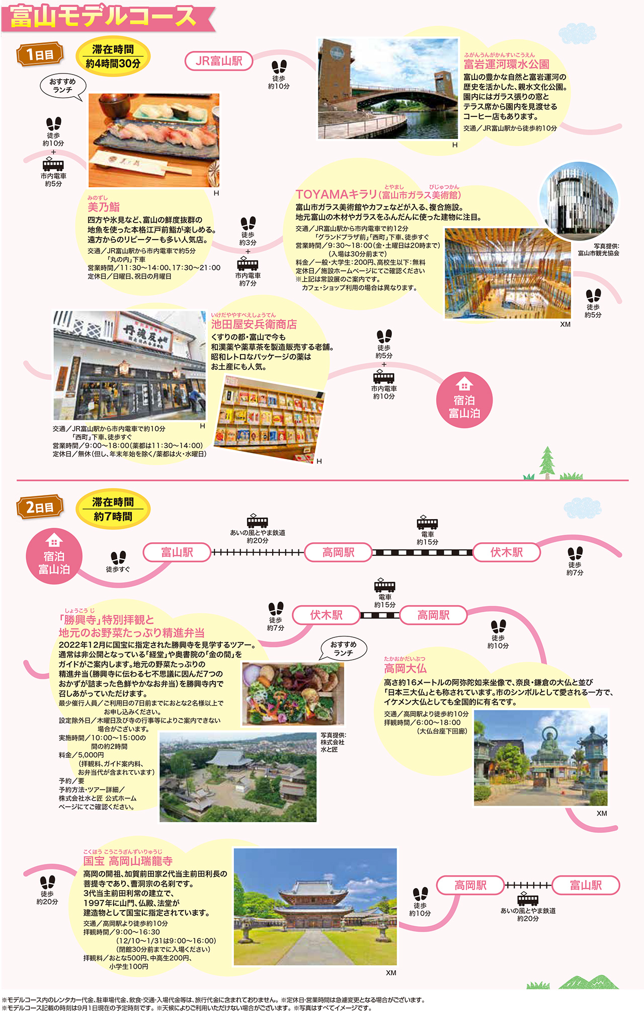富山駅(16:34発)++++++黒部駅(折り返し)++++++高岡駅(折り返し)++++++富山駅(18:50着) - 食事のご提供があるので途中下車・乗車はできません。車内への飲食物の持ち込みはできません。