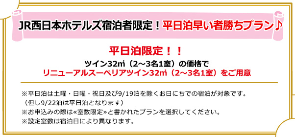 ※ヴィアインホテルチェーンはJR西日本ホテルズ限定のお楽しみはついておりません。