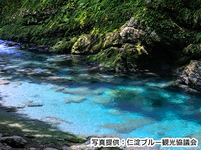 - 太陽光や季節による光の角度によって変化する幻想的な仁淀ブルーが見られます。1年を通して同じ青は見られないと言われるほど、様々な青を見ることができます。