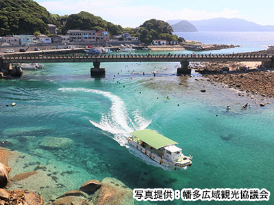 ・見残し海岸に上陸できます。年中無休、荒天時欠航。