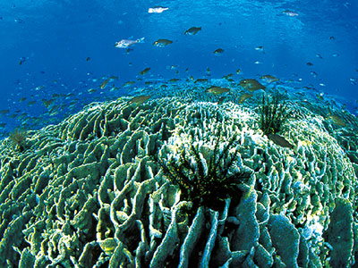 - グラスボートからはテーブルサンゴやシコロサンゴをはじめ、まわりを悠々と泳ぐ色鮮やかな魚を覗き見ることできます。