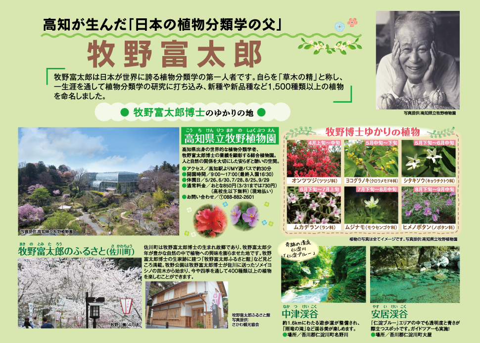 - JR高知駅から周遊バス「MY遊バス」で約30分(停)牧野植物園正門前下車