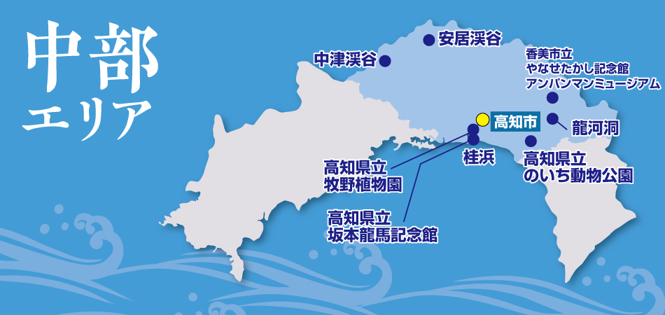 - JR高知駅より観光周遊バス「MY遊バス」で約50分(停)桂浜下車