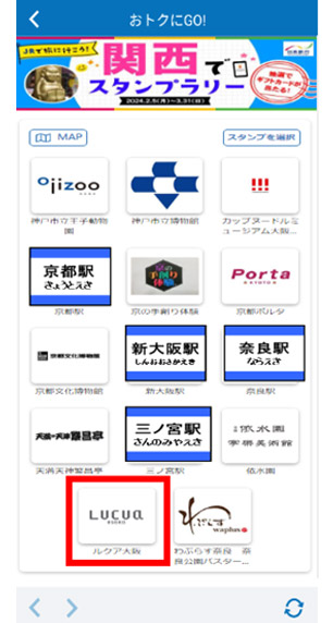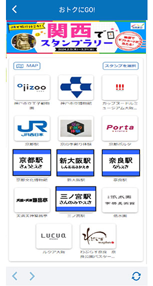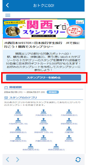 「JR西日本WESTERでめぐる関西でスタンプラリー」ページ -