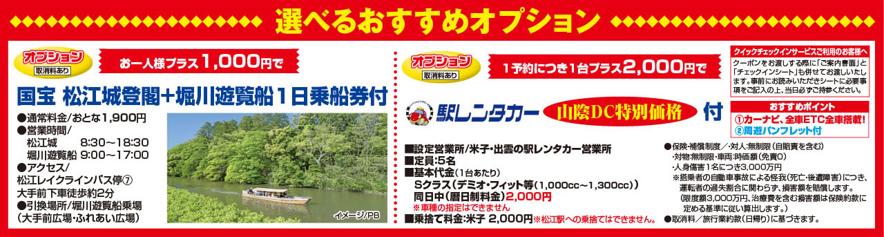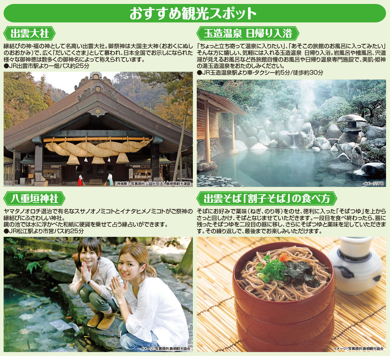 ※「縁結びパスポート」及び「出雲そばめぐりクーポン」は旅行代金に含まれます。ご利用にならなかった場合でも返金・払戻はありません。