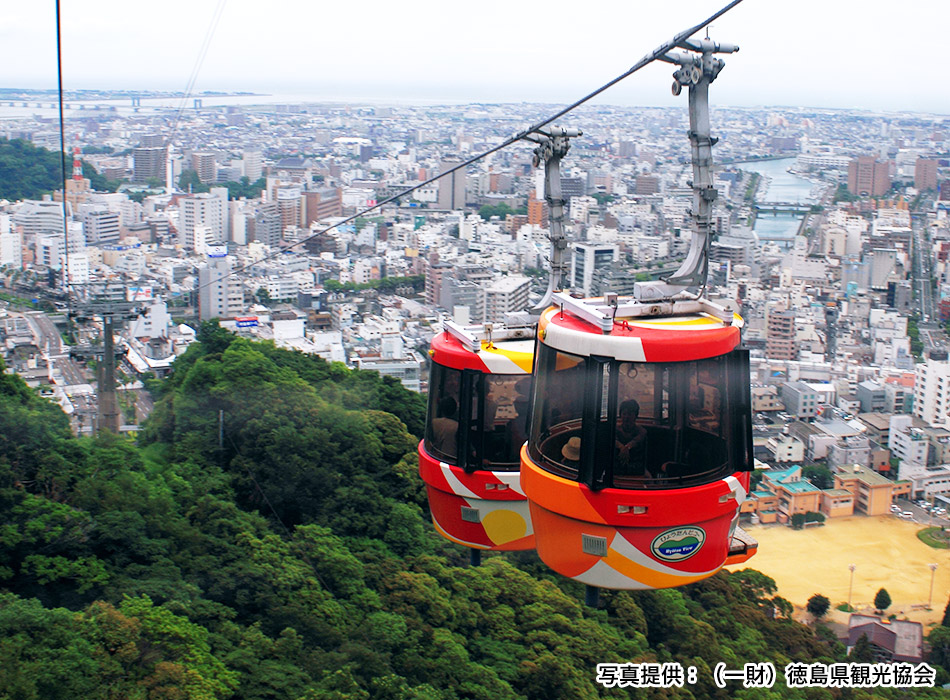 阿波おどり会館5階の山麓駅と標高290mの眉山山頂の山頂駅を約6分で結ぶロープウェイ。