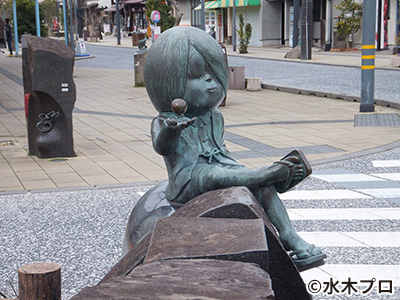 - 「ゲゲゲの鬼太郎」の作者水木しげる氏の出身地。駅前の水木しげるロードには妖怪ブロンズ像が点在しています!
