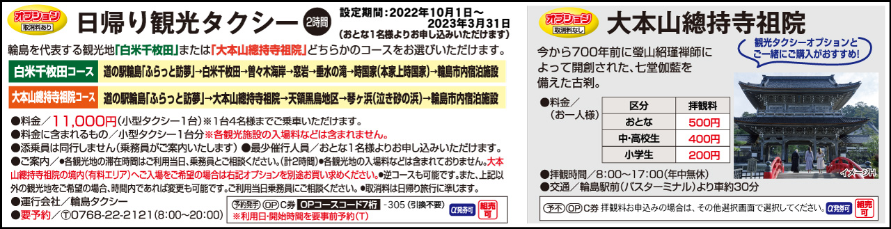 ・日帰り観光タクシー(輪島タクシー)