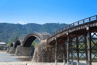 - 岩国市の清流・錦川にかかる、世界でもめずらしい五連の木造アーチ橋。日本三名橋のひとつです。